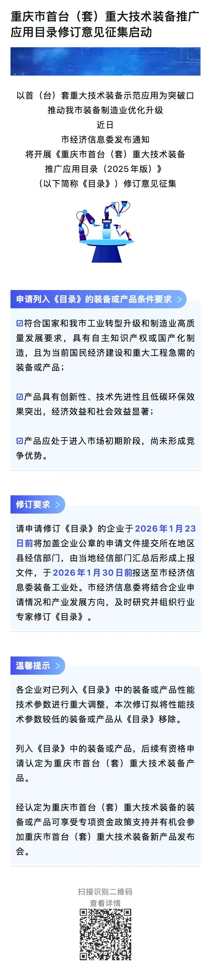 关于修订2026年度重庆市首台(套)重大技术装备推广应用目录的通知